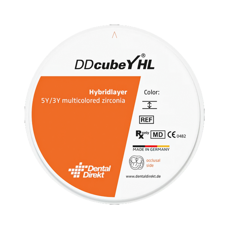 DD cubeY® HL Zirconia е 5Y/3Y многослойна циркониева керамика от най-висок клас, създадена за производство на естетични и функционални зъботехнически конструкции с големи обхвати. Благодарение на своята хибридна структура и плавен преход между слоевете, материалът предлага перфектен баланс между прозрачност, здравина и естествена естетика.